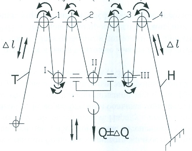 Рисунок 2.15. Кинематическая схема подъемного агрегата с двумя тяговыми концами каната талевой системы