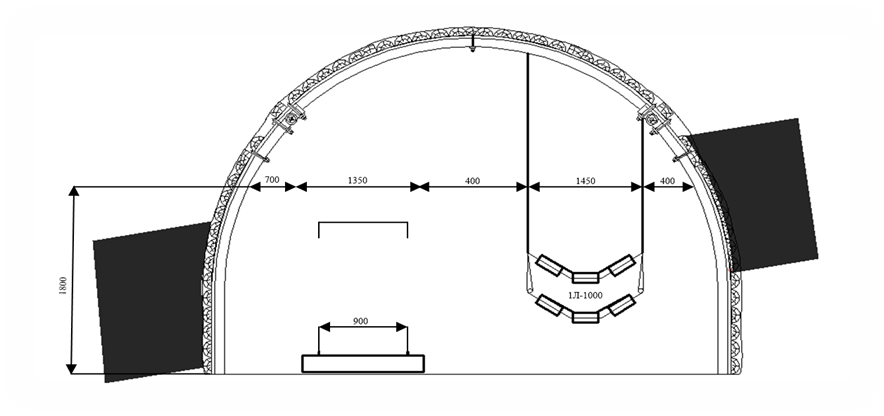 Рисунок 2.2 - Поперечний переріз конвеєрного штреку з розміщенням у ньому устаткування