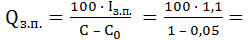 де Із.п. = 1, 1 м3/хв. – метановиділення на при забійній ділянці; С = 1% – припустима, згідно ПБ, концентрація метану у вихідній з виробки вентиляційному струменю [1], с.26; Со = 0, 05% – концентрація метану в струмені повітря, що надходить у тупикову виробку [1], с.26.