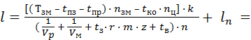 де Тзм = 360 хв. (при 6 годинній зміні) – тривалість добичної зміни; tпз = 20 хв. – час на підготовчо-заключні операції; tпр = 0 хв. – час на провітрювання лави в нішах; nзм = 3 зміни – число добичних змін у добу; tко = 30 хв. (на 1 цикл) – час на кінцеві операції; nц = 3 – число циклів у добу; k = 0, 85 – коефіцієнт готовності комбайна до роботи; Vр – робоча швидкість подачі комбайна, м/хв. Vм – маневрова швидкість комбайна, м/хв.