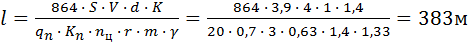 де Руст = 244 кВт – стійка потужність двигунів комбайна; Нw = 0, 8 кВт – питомі енерговитрати на руйнування вугілля, визначається по графіках залежності цієї величини від опірності вугілля. Згідно даним шахти приймаємо Vр = 4, 33 м/хв. де tз = 1хв. – час на зміну одного зубка (різця); r = 0, 63 м– ширина захоплення комбайну; m = 1, 4 м – потужність пласту; z = 0, 02 шт./м3 – витрата зубків на 1 м3 вугілля в цілині; tв = 0, 2 хв. (на 1 м довжини лави) – час допоміжних операцій, віднесений до 1 м довжини лави; γ = 1, 33 т/м3 – щільність вугілля. Перевіряємо довжину лави по чіннику вентиляції, використовуючи формулу: