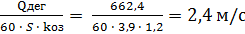 де С = 1% – максимально допустима, згідно ПБ, концентрація метану у витікаю чому струмені лави; С0 = 0, 05%. – концентрація газу метану в струмені повітря, що поступає в лаву. 2) по газах, що утворюються, при вибухових роботах, оскільки в лаві не проводитимуться вибухові роботи, то по цьому чиннику розрахунки проводити не будемо. 3) по кількості людей: Q = 6 ⋅ nлюд. ⋅ kоз = 6 · 15 · 1, 2 = 108 м3/хв. (3.18) де nлюд. = 15 осіб – найбільше число людей, одночасно зайнятих в лаві; kоз = 1, 25 – коефіцієнт, що враховує рух повітря по частині виробленого простору, безпосередньо прилеглий до привибійного. 4) по пилевиділенню: Q = 60 · Vопт · S · kоз = 60 · 1, 6 · 3, 9·1, 2 = 449 м2/хв. (3.19) де Vопт = 1, 6 м/с – оптимальна швидкість руху повітряного струмені в лаві; S = 3, 9 м2 – максимальна площа привибійного простору лави. Виходячи з набутих значень в подальших розрахунках приймаємо кількість повітря, рівне Q = 1656 м3/хв. або 27, 6 м3/с. Враховуючи те, що за дипломним проектом прийнята дегазація, то визначимо витрату повітря з врахуванням чинника дегазації по формулі: Qдег = Q ⋅ (1 - kдег, ) = 1656 ⋅ (1 - 0, 6) = 662, 4 м3/хв. (3.20) де kдег = 0, 6 – коефіцієнт дегазації. З врахуванням набутого значення витрати повітря, визначимо швидкість руху повітря по лаві: V = Що відповідає вимогам правил безпеки [5], с 301.