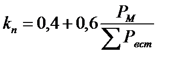 де ∑ Рвст - сумарна встановлена потужність струмоприймачів дільниці, кВт. соsφ ср - середньозважений коефіцієнт потужності дільниці. По рекомендації інституту Центрогіпрошахт для всіх вироблень, окрім крутих пластів небезпечних по раптових викидах, він приймається рівним 0, 6; кп - коефіцієнт попиту, для підготовчих ділянок по рекомендації інституту Центрогіпрошахт він визначається по формулі: