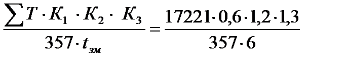де К1 - коефіцієнт, який враховує середньодобовий видобуток вугілля Нормативну чисельність електрослюсарів на роботі (явочну) (Чел., осіб) визначаємо за формулою: Ч ел. = де К1 – коефіцієнт, який ураховує частку участь дільничних електрослюсарів в технічному огляді та ремонту обладнання, К1 = 0, 6; К2 – коефіцієнт, який ураховує технічне обслуговування та ремонт електропускової захисної апаратури і гнучких кабелів, К2 = 1, 2; К3 – коефіцієнт, який ураховує непланові ремонти обладнання, що виконують ремонтні та чергові електрослюсаря дільниці, К3 = 1, 3. Явочну чисельність машиністів підземних установок приймаємо відповідно до кількості транспортних засобів на дільниці. Явочну чисельність гірників приймаємо на основі фактичних даних по шахті для аналогічних умов.