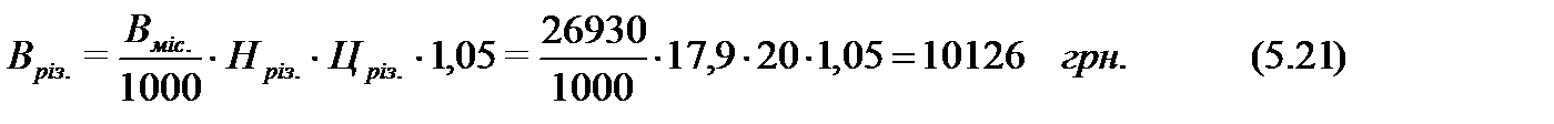 Таблиця 5.4 – Розрахунок витрат по допоміжних матеріалах