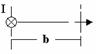 $$$ 972 Ө зара перпендикуляр шексіз ұ зын тү зу ө ткізгішпен магнит тілшесі бір-бірінен, магнит тілшесінің ұ зындығ ынан кө п ү лкен b қ ашық тық та орналасқ ан. Егер, ө ткізгіштен суретте кө рсетілген бағ ытта I ток жіберілсе, магнит тілшесі қ алай бұ рылады?