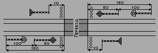 | Схема расстановки предупредительных знаков на нейтральной вставке.