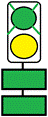 | - два жёлтых огня из них верхний мигающий и одна зелёная светящаяся полоса.