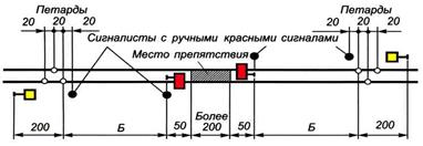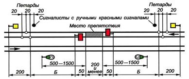 | Как ограждается место препятствия, внезапно возникшее на перегоне