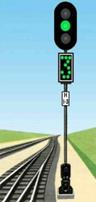 | Отправление поездов при наличии групповых выходных (маршрутных) светофоров, если железнодорожные пути отправления не оборудованы повторительными светофорами, производится по разрешающему показанию группового выходного (маршрутного) светофора и маршрутному указателю, показывающему цифрой зеленого цвета номер того железнодорожного пути, с которого разрешается отправление поезда.