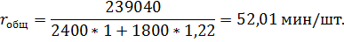 Fэф = (Тсм – Тп)*S*Тр, где Тсм - продолжительность смены (принимается равной 480 мин); Тп – продолжительность регламентированных перерывов (принимается равной нулю); S – число смен; Тр - число рабочих дней в году (принимается равное 249 дням). Fэф = (480 - 0) * 2 * 249 = 239040 мин. Подставив значения