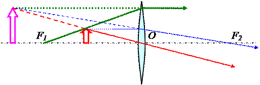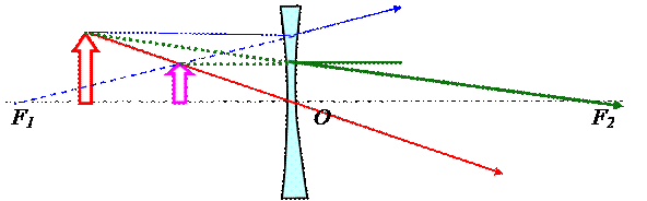 Чем ближе объект к F, тем больше увеличение. Б) Построение изображения через рассеивающую линзу
