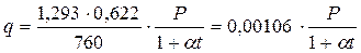 где L − теплота плавления (испарения и т.д.), V2− V1 − изменение объема вещества при переходе из первого состояния во второе, T − температура перехода (процесс изотермический). Уравнение Клапейрона-Клаузиуса определяет наклон кривой равновесия. Например, для воды переход ТТ-Ж имеет обратный наклон, т.к. при кристаллизации воды его объем увеличивается. Количество паров воды в воздухе может меняться как по абсолютной величине, так и по степени насыщения, что характеризуется абсолютной q и относительной r влажностью. Абсолютная влажность – количество водяного пара, находящегося в 1м3 воздуха. Масса 1м3 сухого воздуха при 0˚ С и при давлении 760 мм рт.ст. равна 1, 293 кг. На основании уравнения идеального газа масса 1м3 воздуха при температуре t ˚ C и при давлении P в мм рт.ст. будет: