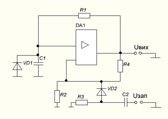 тривалість. При подачі від’ємного запускаю чого імпульсу наш одно вібратор переходить у квазісталий стан, так як він зашифрований діодом VD1.
