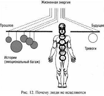 Теперь допустим, что человек болен не гриппом, а раком и мы убеждены, что причиной болезни были некие глубоко вытесненные эмоции. Считая, что путь к исцелению лежит через освобождение от этого энергетического блока, мы могли бы порекомендовать больному обрести связь с вытесненными эмоциями, полностью их прочувствовать и затем отпустить. Однако в отличие от гриппа, который, вероятно, прошел через тонкие тела и проник в физическое всего в течение нескольких дней, энергетическая структура рака могла продвигаться через тонкие тела в течение многих лет, прежде чем попала в физическое тело и проявилась в форме заболевания. В связи с этим перед нами встает вопрос: «Как много времени потребуется для того, чтобы этот процесс пошел в обратном направлении, если мы будем работать только с эмоциональной энергией?» Вполне возможно, что работа займет приблизительно столько же лет, сколько ушло на развитие заболевания (не очень утешительный прогноз в случае рака или другого недуга, когда время является решающим фактором); во всяком случае, такое предположение представляется логичным.