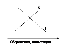 Равновесие между сбережениями и инвестициями возникает в точке пересечения между кривыми S и J. Если субъекты в силу каких-либо причин начинают больше сберегать и меньше потреблять, то это приведет: во-первых, к увеличению предложения сбережений к инвестициям, во-вторых, к сокращению потребления – у фирм возникает затоваривание, что приведет к сокращению производства и отказу от инвестиций. Таким образом, норма процента регулирует взаимодействия между сбережениями и инвестициями.