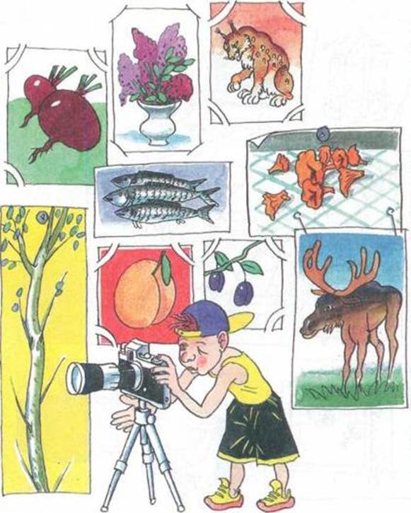 Сима и Сева любят фотографировать. Сима фотографирует животный мир, а Сева - растительный. Определи, где чьи фотографии, и назови, кто на фото у Симы, а что - у Севы. Внимательно рассмотри кадры и найди ошибки фотографов.