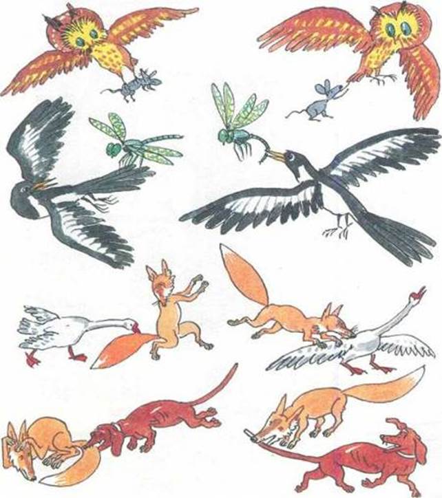 Посмотри на картинку и скажи, кто кого схватил? Как бывает, а как не бывает? Сравни: «собака» и «собака схватила лису». Где здесь слово, а где предложение? О чем сообщается в предложении? Сколько слов