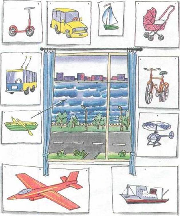 С помощью чего мы можем передвигаться по земле, под землей, по воздуху, по воде? Назови все, что ты перечислил, одним словом. Автомобиль, велосипед, автобус - это наземный транспорт. А как назвать самолет и вертолет; метро; парусник, теплоход и лодку?