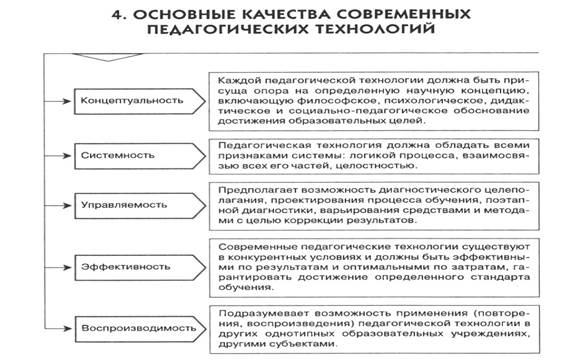 69. Структура педагогической технологии. Критерии технологичности: концептуальность, системность, управляемость, эффективность, воспроизводимость. Концептуальность педагогической технологии предполагает, что каждой педагогической технологии должна быть присуща опора на определенную научную концепцию, включающую философское, психологическое, дидактическое и социально-педагогическое обоснование достижения образовательных целей.