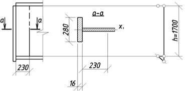 Принимается ребро из листа размером 280 х 16 и проверяется устойчивость опорной части: площадь сечения условной стойки (см. рис. 9, сечение а-а)