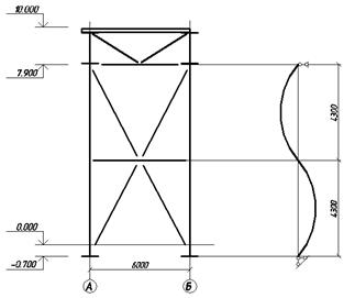 где h 3 = 0, 5 м – заглубление колонн ниже нулевой отметки; h = 1, 74 м – высота сечения главной балки; h б.н = 0, 33 м – высота сечения балки настила; t н = 0, 01 м – толщина металлического настила. Принимается сечение стержня колонны из прокатного двутавра с параллельными гранями полок типа «К». Для двутаврового сечения ix = 0, 43× h, а iy = 0, 24× b (h – высота сечения, b – ширина сечения). Для обеспечения равноустойчивости стержня колонны относительно главных осей симметрии (х–х и y–y) уменьшается расчетная длина колонны относительно оси y – y путем постановки вертикальных связей между колоннами по схеме, приведенной на рис. 12. Расчетные длины стержня колонн: относительно оси x –x le f , x = m × lk = 1 × 8, 40м = 8, 40 м, относительно оси y – y le f , y = m × lk / 2 = 1× 8, 40/2 = 4, 20 м.