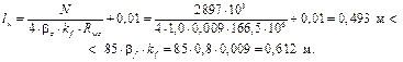 Принимается t p= 28 мм. Длина опорного ребра l p (высота оголовка) находится из условия размещения сварных швов, обеспечивающих передачу усилия N = 2 897 кН с ребра на стенки ветвей колонны. Принимается катет шва kf = 9 мм < 1, 2× t min = 1, 2 × 8, 3 = 9, 96 мм (t min = tw – толщина стенки двутавра). По табл. 34* b f = 0, 8, b z = 1, 0, так как b f × Rwf = 0, 8 × 215 =172 МПа > b z× Rwz = = 1, 0 × 166, 5 = 166, 5 МПа.