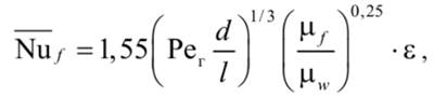 здесь: · · индекс «f» - означает, что физические свойства определяются по средней температуре жидкости tf = 0, 5 (tв.вых + t в.вх ); · индексы «w» и «г» означают, что физические свойства жидкости выбираются, соответственно, при температуре стенки tw и температуре граничного слоя tГ = 0, 5 (tf + tw), · температуру стенки определяем как среднюю между температурами нагреваемой и греющей среды: tw = 0, 5 (tf + tнас). Reв > 10000 - турбулентный режим