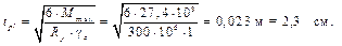 Требуемая толщина плиты (коэффициент γ с = 1, 2, п.11 по табл. 6* [3]: