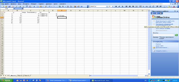 Рис. 4.1. Нахождение коэффициентов линейной регрессии