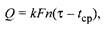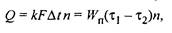 где Q — количество теплоты, отданное за время; kF — произведение коэффициента теплопередачи нагревательных приборов на их поверхность нагрева; Dt — средняя разность температур между греющей и нагреваемой средой; Wn — эквивалент расхода первичной (греющей) среды; t1 и t2 — температуры первичной (греющей) среды на входе в нагревательный прибор и на выходе из него. Средняя разность температур может быть представлена в первом приближении как разность между среднеарифметическими температурами греющей и нагреваемой среды: