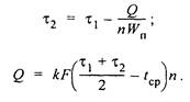 где tср - средняя температура нагреваемой среды; t2, t1 — температуры вторичной (нагреваемой) среды на входе в нагревательный прибор и на выходе из него. Как следует из уравнений (4.1) и (4.2),