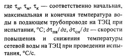 Основная задача этих испытаний — проверка работы устройств, компенсирующих тепловые деформации теплопровода. Эти испытания проводятся обычно при отключенных установках потребителей теплоты, но включенных перемычках у тех потребителей, которые обеспечивают циркуляцию воды в ответвлениях. Продолжительность испытания определяется из условия поддержания максимальной температуры воды на концевых участках сети в течение срока: zк= 30 мин = 1800 с. Циркуляционный расход сетевой воды во время испытания, м рассчитывается как