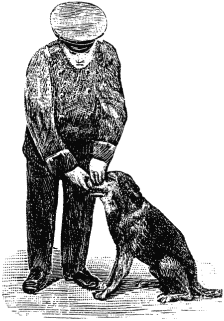 Медленно — к наказанию, Быстро — к благодеянию. Поговорка Императора Генриха I Команда: «принеси», «оставь». Предварительное замечание. Апортирование означает — уметь приносить, а команда «апорт» значит — «принеси сюда». Почти каждая собака склонна приносить брошенные вещи. В силу этой способности, дрессировщики смотрят на это, как на залог успеха дрессировки собаки, и… ошибаются, ибо, желая иметь собаку, отвечающую требованиям полицейской службы в отношении «апорта», необходимо отучить ее от гибельной страсти — все носить. Много тяжелых часов перенесет собака, много труда и времени потребуется, чтобы отучить ее от этой пагубной привычки. Апортирование по требованию дрессировщика, доказывает лишь послушание собаки, ее сознательную работу, и забавой служить не может. Собаки, привыкшие все носить, впоследствии трудно воспитываются. Отучить их приносить предмет не мятым и не порченным — делается невозможным. При упражнении в апорте не следует употреблять, как средства наказания, ни палки, ни дрессировочного ошейника и обращаться с собакой только осторожно. Наказание ни к чему не ведет, но успеху мешает. Терпением и повторением пройденного — вот чем достигают цели. По очень основательным причинам, упражнение в апорте изложено подробно, так как им легко испортить собаку, уверенность же в апорте составляет важнейшее качество законченной в смысле дрессировки полицейской собаки. Цель упражнения. — Первое упражнение имеет целью приготовить собаку к апортированию, пробудив в ней понимание требуемого, в особенности же обучить ее осторожному обращению с приносимым предметом. Способ. — Погуляй с собакой в дрессировочном помещении, затем остановись посередине. Скомандуй «садись». Брось веревку, стань перед собакой, левую руку положи в пасть собаки, так, чтобы большой палец руки лежал на одной, а указательный на другой стороне морды несколько сзади клыков. Правой рукой направь голову собаки горизонтально. Скомандуй «апорт» и в то же время нажми слегка большим и указательным пальцами левой руки на губы собаки. Как только собака откроет пасть, всунь ей туда правую руку, одетую в толстую перчатку, и при этом постоянно говори «апорт». Оставь левую руку на своем месте, а правую в пасти, даже если собака начнет пробовать вертеться и кружиться, чтобы освободить свою пасть от твоей правой руки. Когда собака будет спокойно держать голову, скомандуй «оставь» и вынь правую руку из пасти. Похвали собаку. Повторяй это упражнение, стараясь держать подольше правую руку в пасти собаки. Следи, чтобы собака при слове «апорт» выучилась быстро открывать пасть. Говорить собаке «оставь» необходимо в тот момент, когда она лежит неподвижно. За точное исполнение приказания, всегда хвали собаку. После десятикратного повторения упражнения, сделай с собакой несколько туров и начинай снова. Дабы избежать нажима на губы собаки, обращай внимание, открывает ли по команде «апорт» собака свою пасть, и лишь при небрежном выполнении требования или нежелании открыть пасть нажми пальцами на губы. Продолжительность — по 1 часу; повторения — 2 раза.