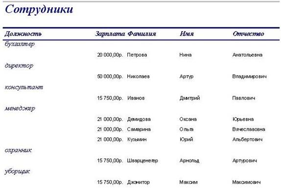 Звіти призначені для формування вихідних документів і виведення їх на друк. За своїми властивостями і структурі звіти багато в чому подібні формам. Основна їх відмінність полягає в тому, що у звіті відображаються всі дані і в них передбачена можливість групувати дані за різними критеріями. Звіти на відміну від форм можуть містити спеціальні елементи оформлення, характерні для друку документів: колонтитули, номери сторінок і т.д. Звіти, також як і форми, можна створювати за допомогою конструктора або майстра звітів. Використовується також автоматичне створення звітів.