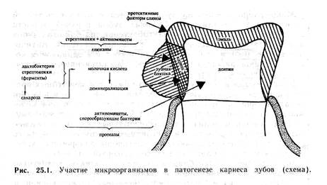 Зубные бляшки — это скопления бактерий в матриксе органических веществ, главным образом протеинов и полисахаридов, приносимых туда слюной и продуцируемых самими микроорганизмами (рис. 25.1). Различают над- и поддесневые бляшки.