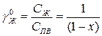Рис. 1.14. Зависимость относительного увеличения концентрации примеси в жидкой фазе от массового паросодержания.