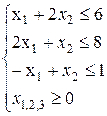 Точку А(0; 0) можна використовувати як початкове припустиме рішення, тому що при х1 = х2 = 0 маємо S1 = 6 > 0; S2 = 8 > 0; S3 = 1 > 0; S4 = 2 > 0. Зауваження. Так можна діяти в тих випадках, коли початковий базис складається з залишкових змінних, якщо при них знак " +". Отримані результати представимо у вигляді таблиці.