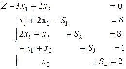 F – 3* x 1 – 2* x 2 + 0*S1 + 0*S2 + 0*S3 = 0