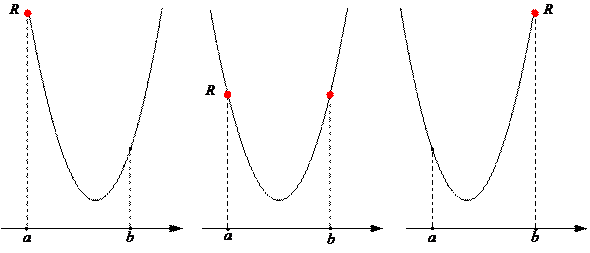 END. Решение: 1) заметим, величина H в программе не изменяется, то есть фактически выполняет роль константы; она передаётся в функцию и влияет на значение функции 2) что в программе есть цикл, в котором переменная t принимает последовательно все целые значения в интервале от a до b: for t: =a to b do begin ... End; 3) до начала цикла в переменную M записывается значение a, а в переменную R – значение функции в точке a: M: =a; R: =F(H, a); 4) внутри цикла есть условный оператор, в котором вычисляется значение функции F(t) и сравнивается со значением переменной R: if (F(H, t) > R)then begin M: =t; R: =F(H, t) End; если новое значение функции больше, чем значение R, в R записывается значение функции в точке t, а в переменной M запоминается само значение t (аргумент функции, соответствующий значению в R) 5) в результате анализа пп. 1-3 можно сделать вывод, что цикл ищет максимум функции F(H, t) на интервале от a до b 6) заметим, что выводится значение R, а величина M не выводится и не влияет на вычисление R, поэтому можно не обращать на неё внимания 7) функция F вычисляет значение F: =11*(x-H)*(x-H) + 13; 8) график этой эта функции – парабола с ветвями, направленными вверх (коэффициент при x2 = 11 > 0) 9) вершина параболы находится в точке x = H, ветви идут симметрично влево и вправо вверх 10) при изменении H парабола двигается влево или вправо (но не вверх-вниз!) 11) итак, мы ищем максимальное значение квадратичной функции, и хотим, чтобы это значение было наименьшим 12) давайте подвигаем параболу в пределах отрезка [ a; b ]: