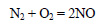Азот реагирует с кислородом в условиях электрического разряда с образованием оксида азота (II):