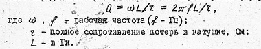 4) Произведем расчеты Q(добротности) и r, для того чтобы простроить график зависимости Q(f), где индуктивность L и D без экрана, d=l/N=0, 834 см., а f=10…50 МГц. 1. f=10 МГц