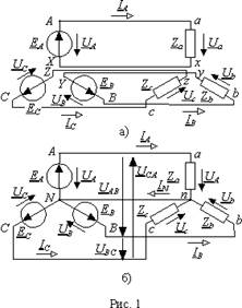 Ответ: Трехфазные цепи являются частным случаем многофазных систем, под которыми понимают совокупность нескольких нагрузок и источников питания, имеющих одинаковую частоту и смещенных по фазе на некоторый угол друг относительно друга. Каждая пара источник-нагрузка может рассматриваться как отдельная цепь и называется Если отдельные фазы системы не соединены между собой электрически (рис. 1 а)), то такую систему называют несвязанной. Несвязанная система не обладает никакими особыми свойствами, и если между фазами отсутствует и магнитная связь, то такая совокупность цепей вообще не может рассматриваться как многофазная. Соединение фаз системы между собой (рис. 1б)) придает ей особые качества, благодаря которым многофазные системы (в особенности трехфазные) получили исключительное распространение в области передачи и преобразования электрической энергии. Одним из очевидных преимуществ связанной системы (рис. 1) является сокращение с шести до четырех числа проводников, соединяющих источники с нагрузкой. При благоприятных обстоятельствах это число может быть уменьшено до трех. В дальнейшем мы отметим целый ряд других преимуществ, которым обладают связанные системы. Любая многофазная система может быть симметричной и несимметричной. Симметрия системы определяется симметрией ЭДС, напряжений и токов. Под симметричной многофазной системой ЭДС, напряжений или токов понимают совокупность соответствующих величин, имеющих одинаковые амплитуды и смещенных по фазе на угол 2 /m по отношению друг к другу, где m - число фаз системы. Если для обозначения фаз трехфазной системы использовать первые буквы латинского алфавита, то симметричную систему ЭДС можно записать в виде