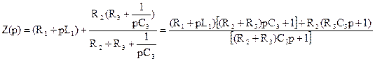 Понятно, что исключение из уравнения левой части приводит к новому уравнению с иными переменными. Применительно к задачам электротехники это уравнение описывает работу цепи без влияния внешних (побуждающих) сил. Электромагнитные процессы в такой цепи происходят только под воздействием энергии, сосредоточенной в элементах L и C самой цепи. Этот режим называют свободным, а уравнение – уравнением для свободных составляющих токов iсв и напряжений Uсв, каковые и находятся в результате решения однородного уравнения. Характеристическое уравнение, соответствующее однородному уравнению (6) имеет вид: , которое после простых алгебраических преобразований приводится к , то есть к линейному алгебраическому уравнению второго порядка, решение которого сводится к определению его корней р1 и р2. Однако при решении инженерных электротехнических задач составление характеристического уравнения может быть существенно упрощено. Оно может быть составлено без составления систем уравнений электрического состояния и математических операций с ними, которые, как мы видим, довольно не просты. Характеристическое уравнение любой цепи может быть получено из комплексной версии входного сопротивления рассматриваемой цепи Zвх (jw) при замене оператора «jw» на некоторый оператор «р» и приравнивании получаемого выражения Z(p) к нулю, то есть Z(p)=0. Например, характеристическое уравнение цепи рисунка 2.1 может быть получено путем составления Zвх (jw) со стороны зажимов источника: