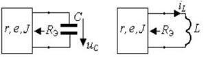 Ответ: Порядок электрической цепи определяется числом реактивных элементов. Цепь первого порядка (n = 1) включает один реактивный элемент - индуктивность или емкость и любое число резистивных элементов и независимых источников питания. По отношению к реактивному элементу всю остальную цепь можно считать резистивным активным двухполюсником (рис. 3.1а, б).