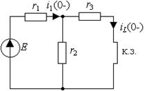 Рис. 3.5. Схема для анализа докоммутационного состояния цепи. Так как исследуемая цепь включает один источник энергии, то наиболее просто получить результат можно путем использования метода эквивалентных преобразований, вычисляя входное сопротивление цепи со стороны источника напряжения: