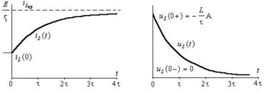 а) б) Рис. 3.6. Графики переходного процесса: а)ток в индуктивности; б)напряжение на индуктивности Например, график функции