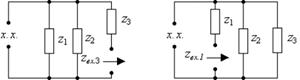 На основании этого анализа сформулируем порядок получения характеристического уравнения цепи: а. Для времени t > 0 следует изобразить комплексную расчетную цепь; б. Исключить из схемы все независимые источники энергии: источники тока разомкнуть, источники напряжения замкнуть накоротко. Найти входное сопротивление со стороны любой ветви и записать это выражение в виде дробно-рациональной функции, где в числителе и в знаменателе образуются полиномы по степеням j ω