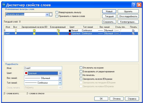 параметрами слоя: по именам, по атрибутам видимости, цветам или типам линий. Имена слоев и типов линий могут быть отсортированы в алфавитном прямом и обратном порядках.