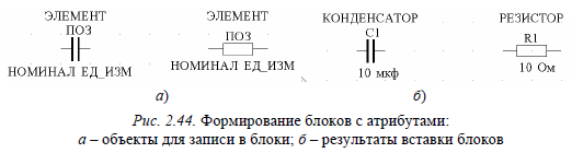 Ответ: Создание атрибутавыполняется командой ДИАЛАТОП, с помощью которой в диалоговом окне «Создание описания атрибута» (рис. 2.43) пользователь указывает свойства и параметры атрибута: имя, подсказку и значение по умолчанию; текстовые свойства; точку вставки и его необязательные режимы(скрытый, постоянный, контролируемый и установленный). Команда ДИАЛАТОПактивизируется в командной строке или из меню РИСОВАНИЕ / БЛОК / ЗАДАНИЕ АТРИБУТОВ. Создание описания атрибута из командной строки производится командой АТОПР. На рис. 2.44 показаны графические элементы для условных обозначений элементов электрической цепи – резистора и конденсатора, а также атрибуты ЭЛЕМЕНТ, ПОЗиция, НОМИНАЛ и ЕД_ИЗМ для размещения в них при каждом вхождении блока соответствующих данных, а также результаты вставки этих сформированных блоков в чертеж. Редактирование атрибутов, связанных с блоками, осуществляется командой ДИАЛАТРв диалоговом окне «Редактирование атрибутов» или в редакторе атрибутов блоков, доступном из меню РЕДАКТ /ОБЪЕКТЫ / АТРИБУТЫ / ПО ОДНОМУ (рис. 2.46). В редакторе атрибутов блоков возможно редактирование параметров текста(высота, наклон и т. п.) и свойств атрибута (слой, цвет и др.) Управление глобальной видимостью атрибутов осуществляет команда АТЭКР путем переключения трех опций-режимов: Нормальный – видимость атрибутов определяется их описанием (скрытые или нет); Вкл – все атрибуты видны независимо от их описаний; Откл – полное отключение видимости атрибутов. Команда ПЕРЕАТР производит переопределение блока с добавлением новых атрибутов. Извлечение данных атрибутов из рисунка в отдельный текстовый файл, который впоследствии может быть передан в какую-либо систему управления базами данных, осуществляется командой ДИАЛАТЭК. При этом необходимо предварительно определить структуру выходного файла и создать файл шаблона. По шаблону AutoCAD определяет, данные каких атрибутов нужно извлекать из рисунка и как их разместить во внешнем файле. В шаблоне построчно для каждого атрибута через пробел указываются следующие данные: 1)имя атрибута; 2)характер данных – символьные (C) или числовые (N); 3)максимальная длина поля для вывода данных из атрибута; 4)точность вывода числовых данных (число десятичных знаков). Извлечение данных конкретного атрибута производится, только если его имя полностью совпадает с именем поля, заданным в файле шаблона. Если блок не содержит каких-либо из заданных в шаблоне атрибутов, их значения заменяются пробелами (для символьных) или нулями (для числовых). Блоки, не содержащие ни одного из перечисленных атрибутов, в выводе не участвуют. Каждое из полей, задающих вывод атрибутов, должно упоминаться в шаблоне не более одного раза. Шаблон может включать в себя поля типа BL: xxx, перечисленные ниже. Первые 15 полей – общие; они описывают стандартные характеристики блока, остальные поля соответствуют атрибутам блоков. Символами nnn обозначена длина поля в виде трехзначного числа, ddd – число знаков после десятичной запятой в числовых данных: BL: LEVEL Nnnn000 Уровень вложенности блока BL: NAME Cnnn000 Имя блока BL: X Nnnnddd Координата X точки вставки BL: Y Nnnnddd Координата Y BL: Z Nnnnddd Координата Z BL: NUMBER Nnnn000 Счетчик блоков BL: HANDLE Cnnn000 Метка блока BL: LAYER Cnnn000 Имя слоя вставки блока BL: ORIENT Nnnnddd Угол поворота блока BL: XSCALE Nnnnddd Масштаб по X BL: YSCALE Nnnnddd Масштаб по Y BL: ZSC